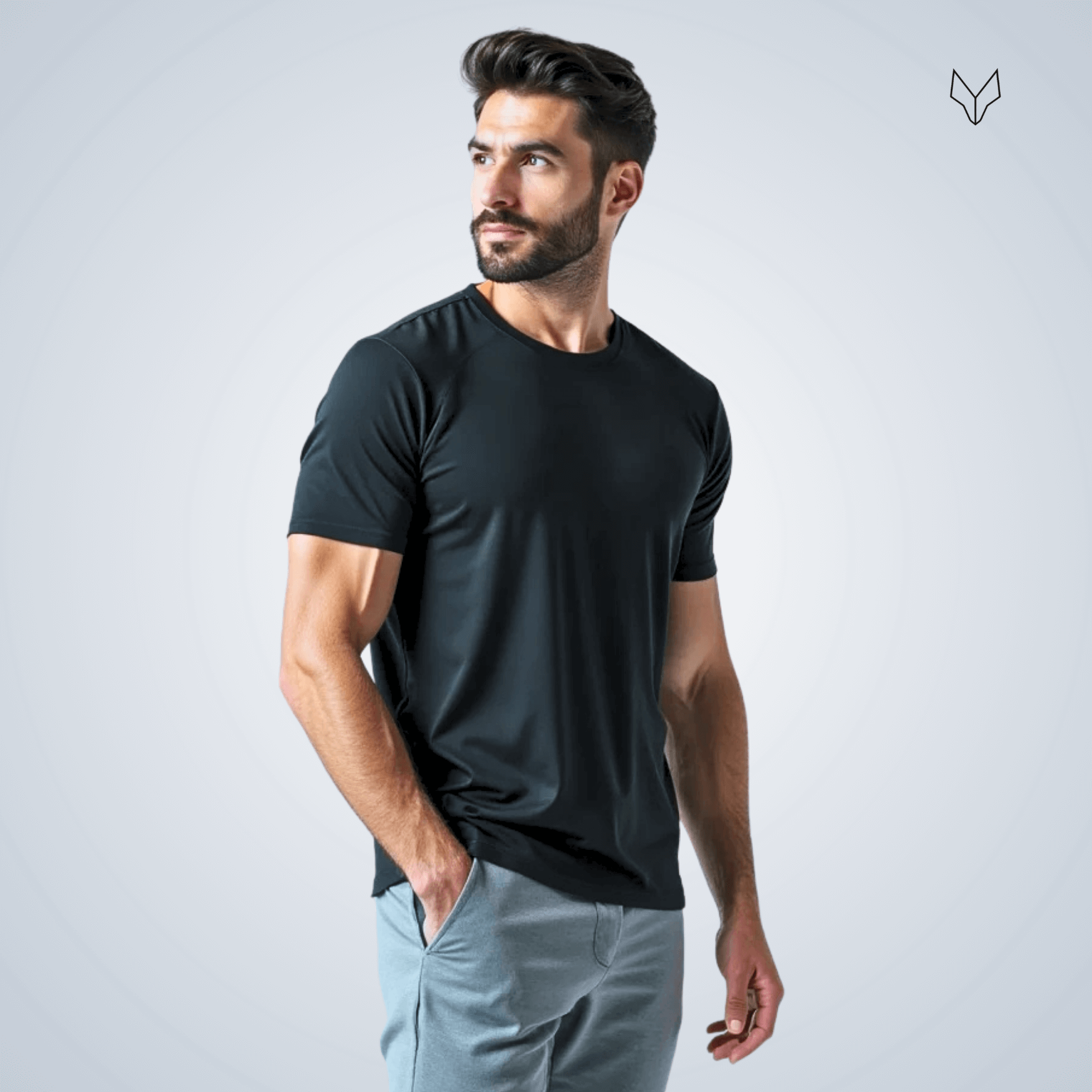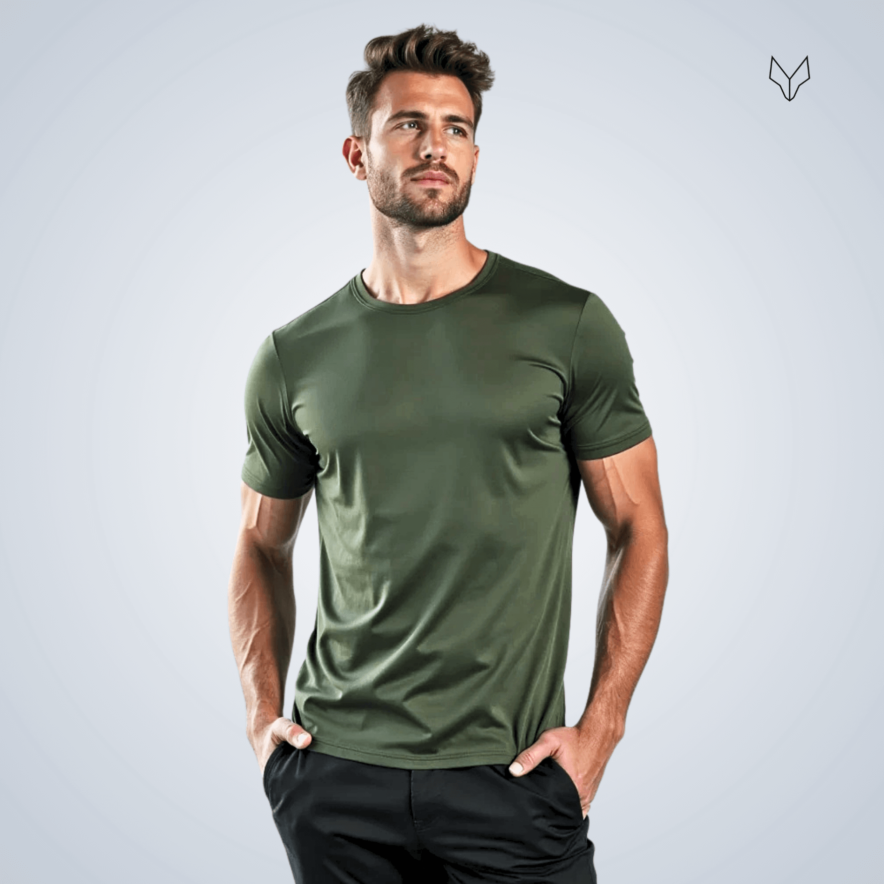 ● Uma camiseta de poliamida ou dryfit para treinar — mas quer algo mais macio e elegante.